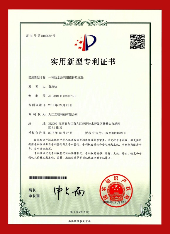 實(shí)用新型專利證書(shū)